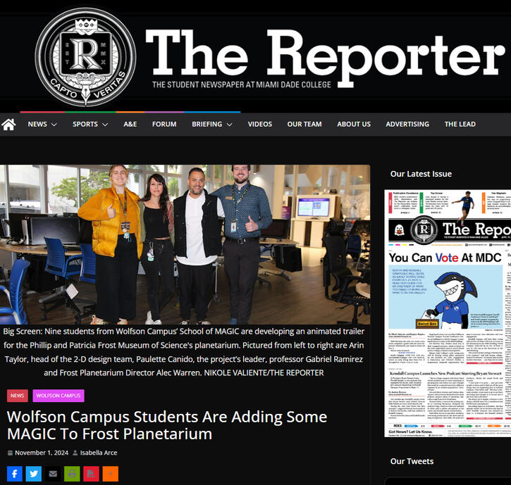 Mentioned on TheReporter For Co-Directing The Frost Museum Of Science's Opening Planetarium Film